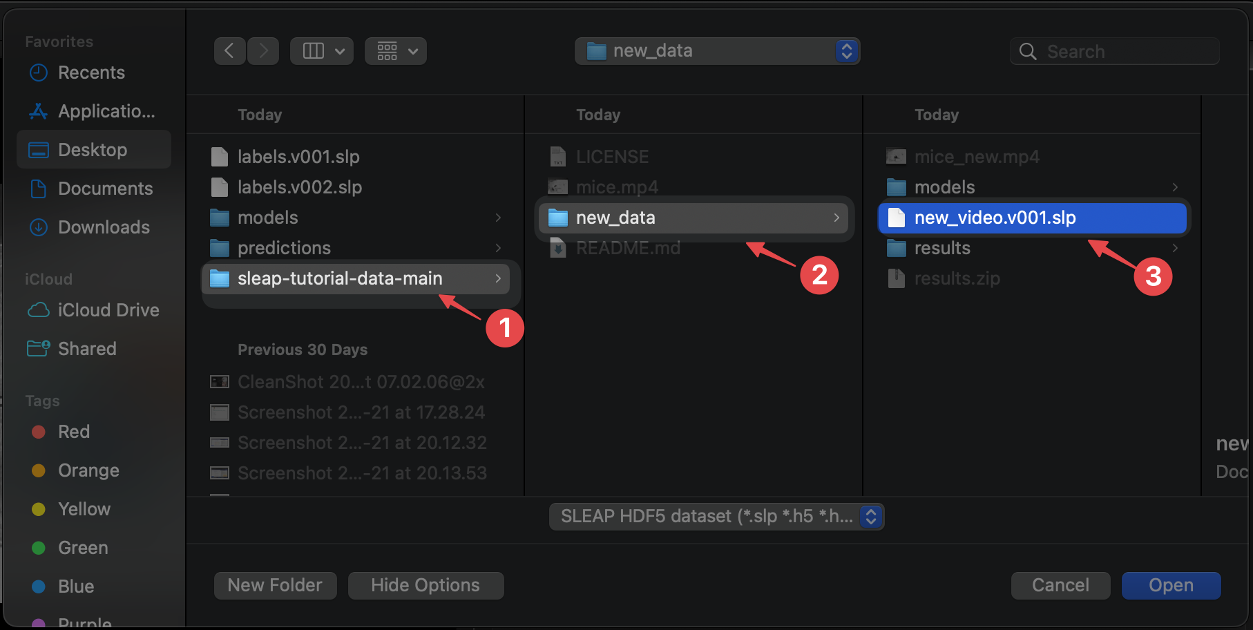 new_datafolder downloaded in step 2 and selectnew_video.v001.slp: