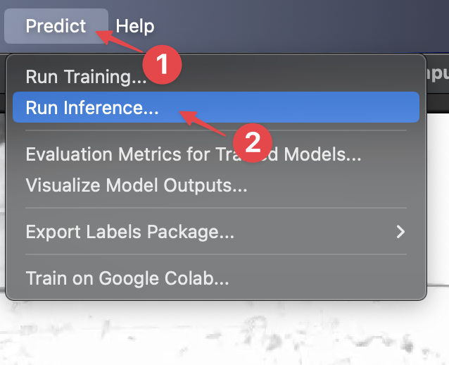 Go to the Predict menu → Run Inference to open the inference configuration window.