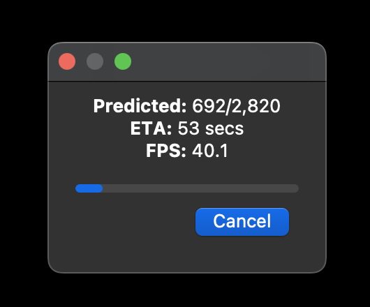 Predict On → entire current video (2820 frames)