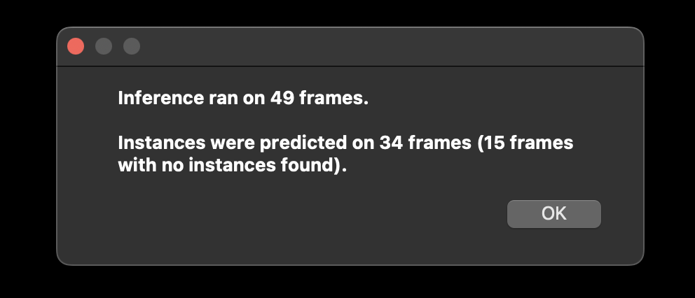Once training finishes, SLEAP will automatically use the model to predict instances in the remaining unlabeled frames in the Labeling Suggestions: