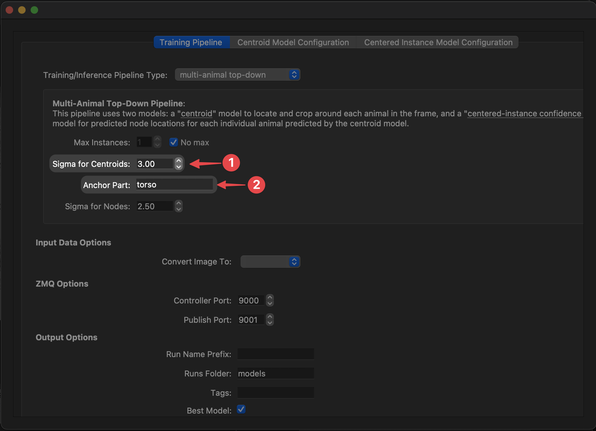 Training for top-down models occurs in two stages (centroid → centered instance). SLEAP will automatically start the second stage once the first one finishes.